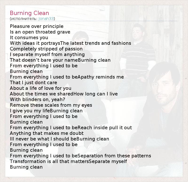 А как ты думаешь, о чем песня "Burning Clean" ?
