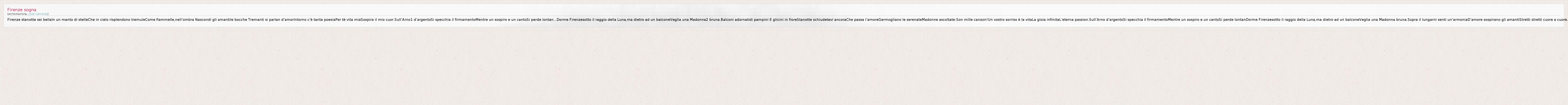 Firenze stanotte sei bellaIn un manto di stelleChe in cielo risplendono tremuleCome fiammelle,nell’ombra Nascondi gli amantile bocche Tremanti si parlan d’amorIntorno c’è tanta poesiaPer tè vita miaSospira il mio cuor.Sull’Arno1 d’argentoSi specchia il firmamentoMentre un sospiro e un cantoSi perde lontan...Dorme Firenzesotto il raggio della Luna,ma dietro ad un balconeVeglia una Madonna2 bruna.Balconi adornatidi pampini E glicini in fioreStanotte schiudetevi ancoraChe passa l’amoreGermogliano le serenateMadonne ascoltate:Son mille canzon!Un vostro sorriso è la vitaLa gioia infinitaL’eterna passion.Sull’Arno d’argentoSi specchia il firmamentoMentre un sospiro e un cantoSi perde lontanDorme Firenzesotto il raggio della Luna,ma dietro ad un balconeVeglia una Madonna bruna.Sopra il lungarni senti un’armoniaD’amore sospirano gli amantiStretti stretti cuore a cuore.