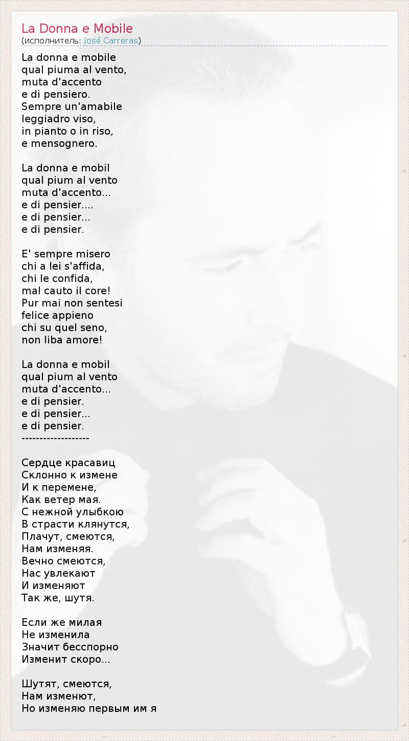 А как ты думаешь, о чем песня "La Donna e Mobile" ?