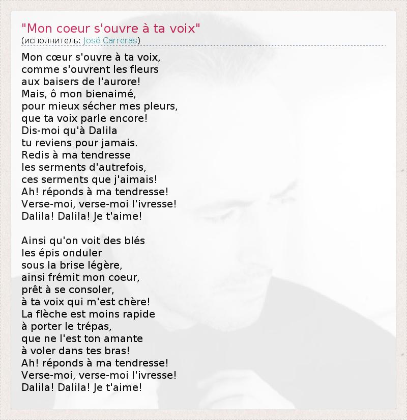 А как ты думаешь, о чем песня ""Mon coeur s'ouvre à ta voix"" ?