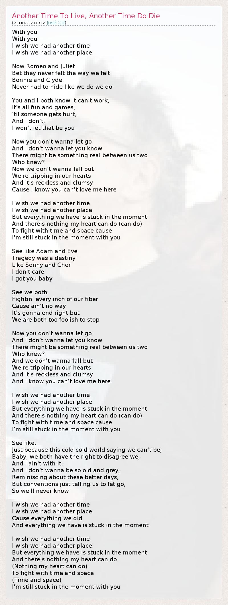 А как ты думаешь, о чем песня "Another Time To Live, Another Time Do Die" ?