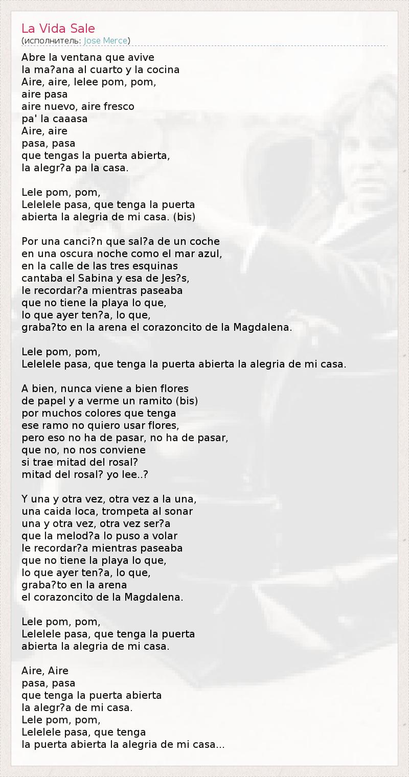 А как ты думаешь, о чем песня "La Vida Sale" ?
