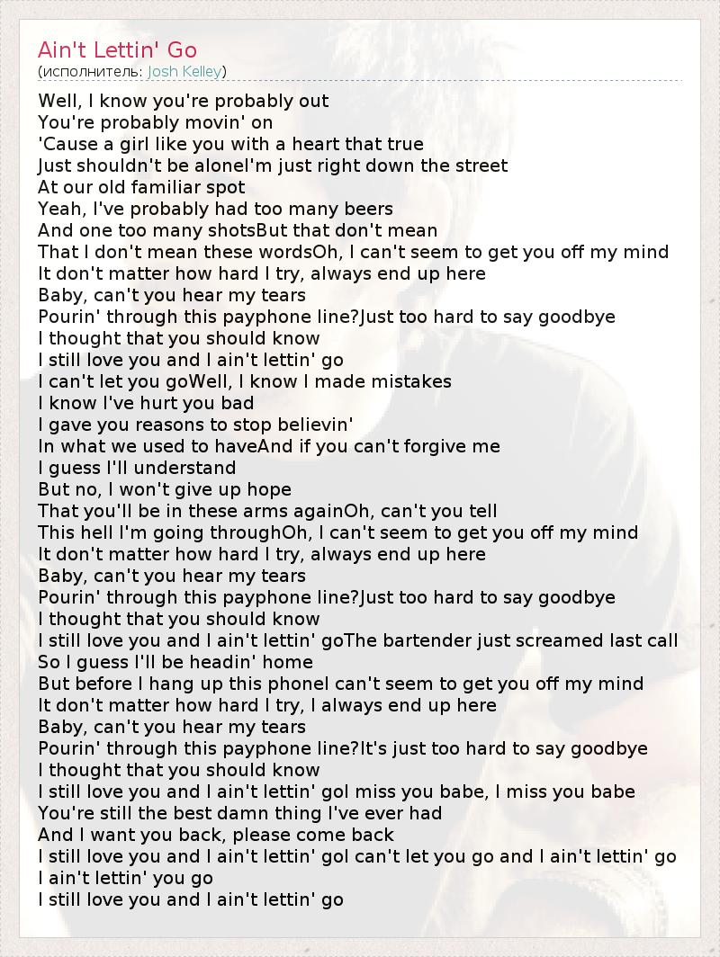 I still love you and I ain't lettin' goI can't let you go and I ain't lettin' go