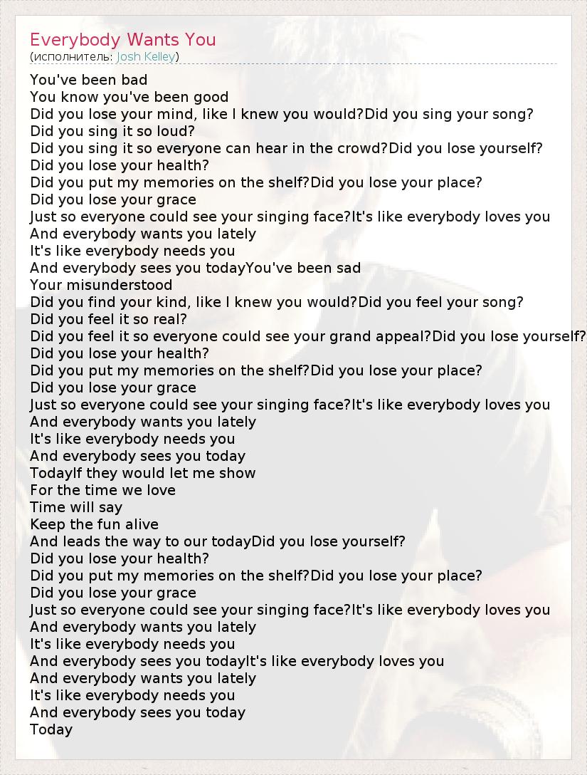 А как ты думаешь, о чем песня "Everybody Wants You" ?