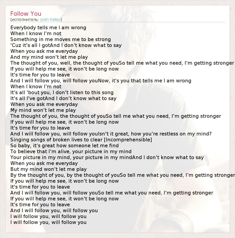 And I will follow you, will follow youNow, it's you that tells me I am wrong