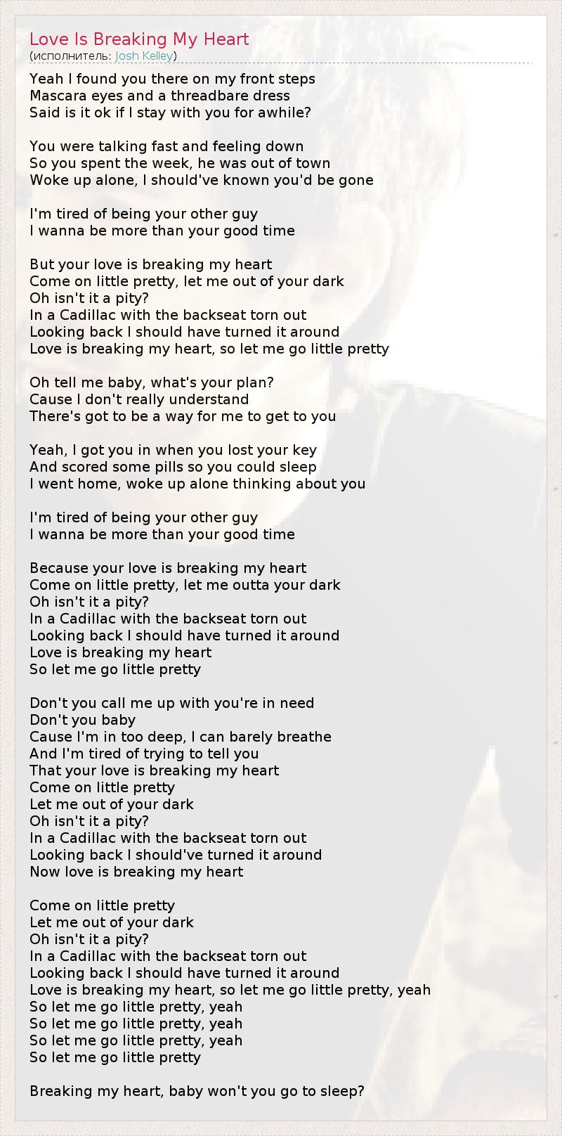 А как ты думаешь, о чем песня "Love Is Breaking My Heart" ?