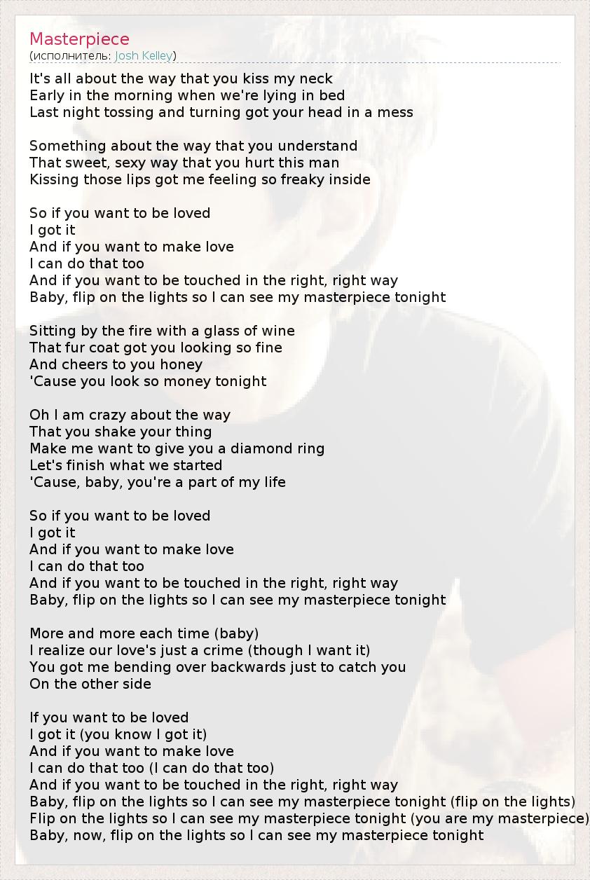 Flip on the lights so I can see my masterpiece tonight (you are my masterpiece)