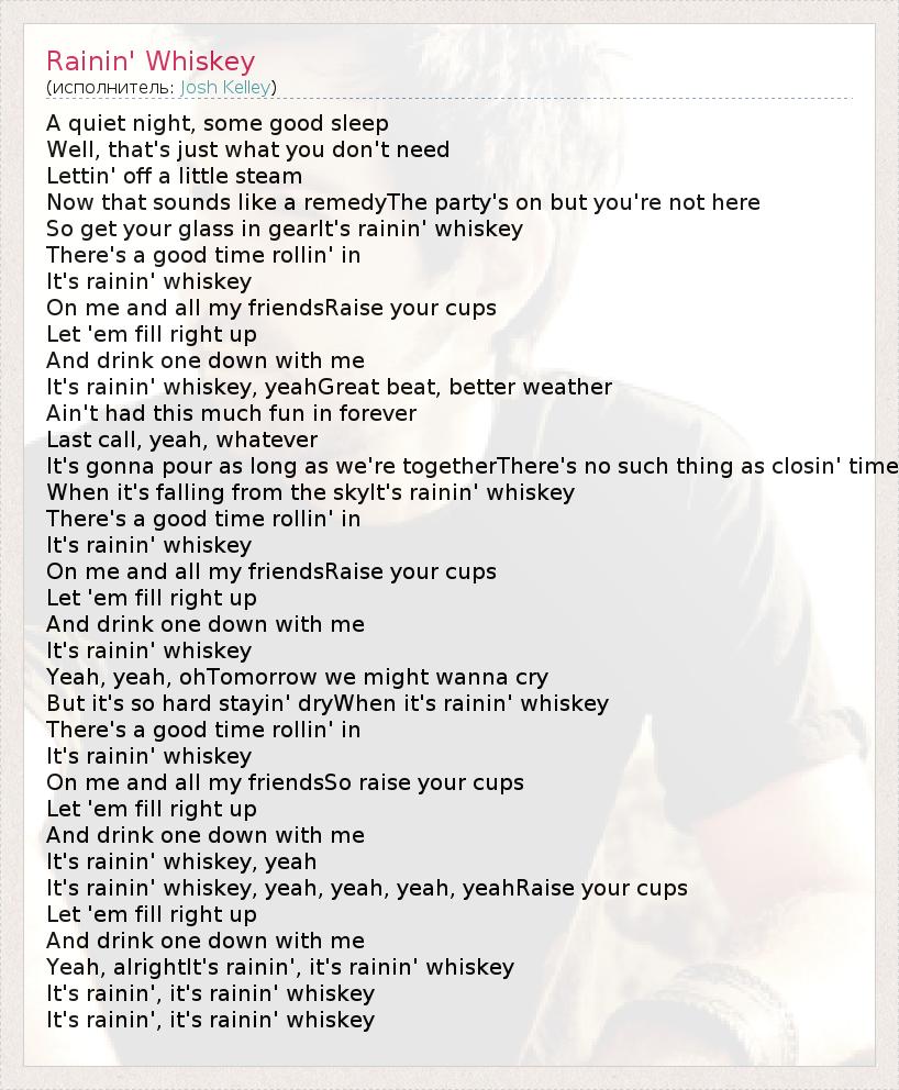 А как ты думаешь, о чем песня "Rainin' Whiskey" ?