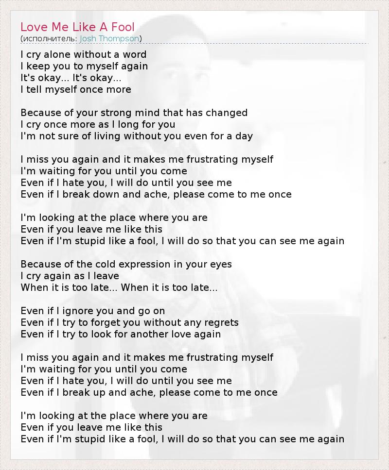 А как ты думаешь, о чем песня "Love Me Like A Fool" ?