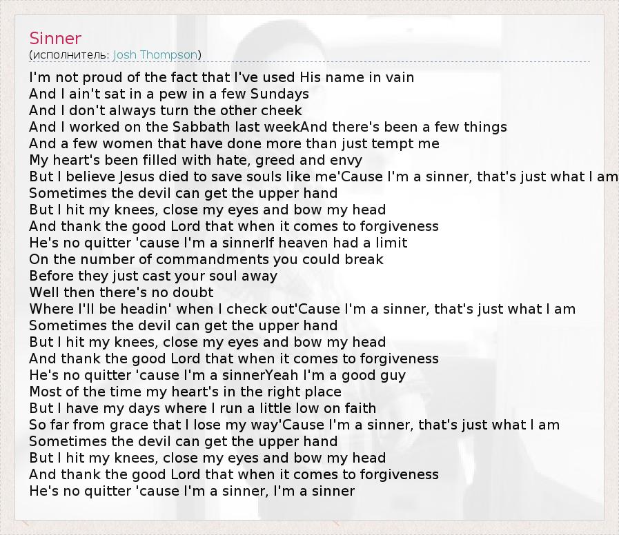 He's no quitter 'cause I'm a sinner, I'm a sinner