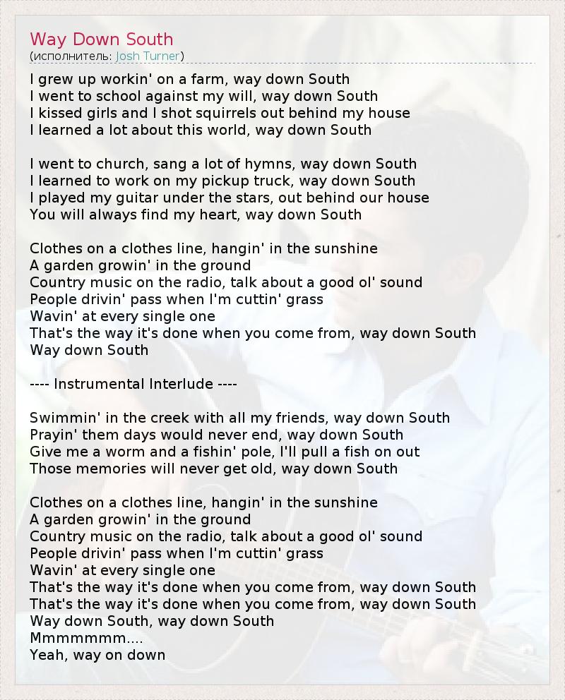 А как ты думаешь, о чем песня "Way Down South" ?