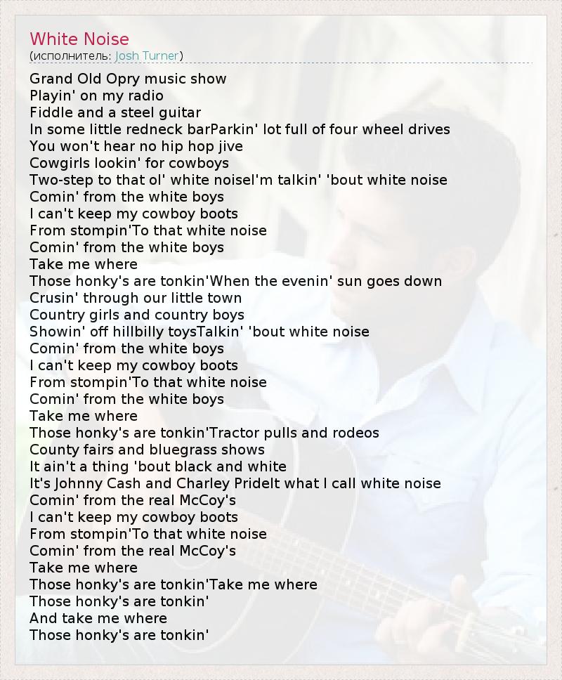 Showin' off hillbilly toysTalkin' 'bout white noise
