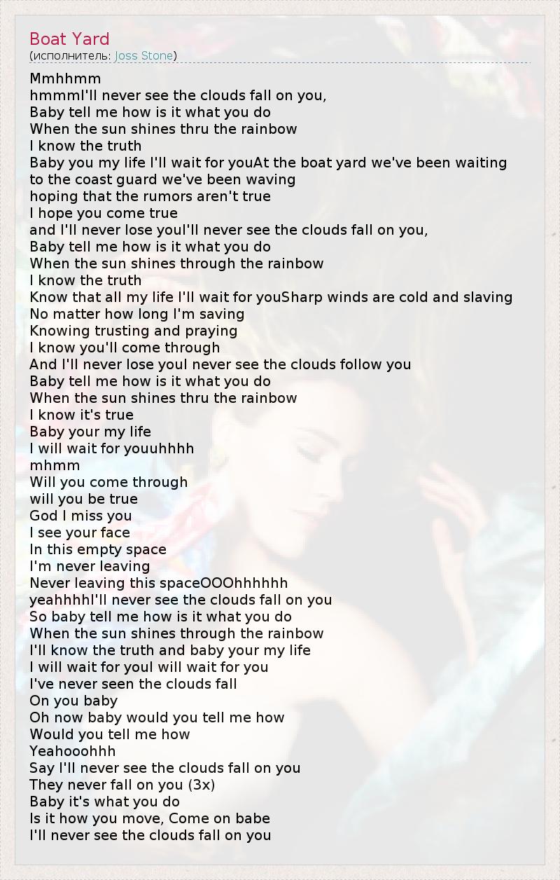 А как ты думаешь, о чем песня "Boat Yard" ?