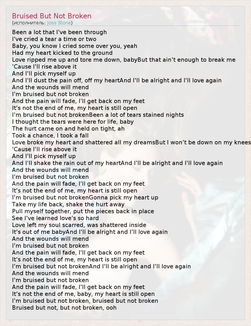 А как ты думаешь, о чем песня "Bruised But Not Broken" ?