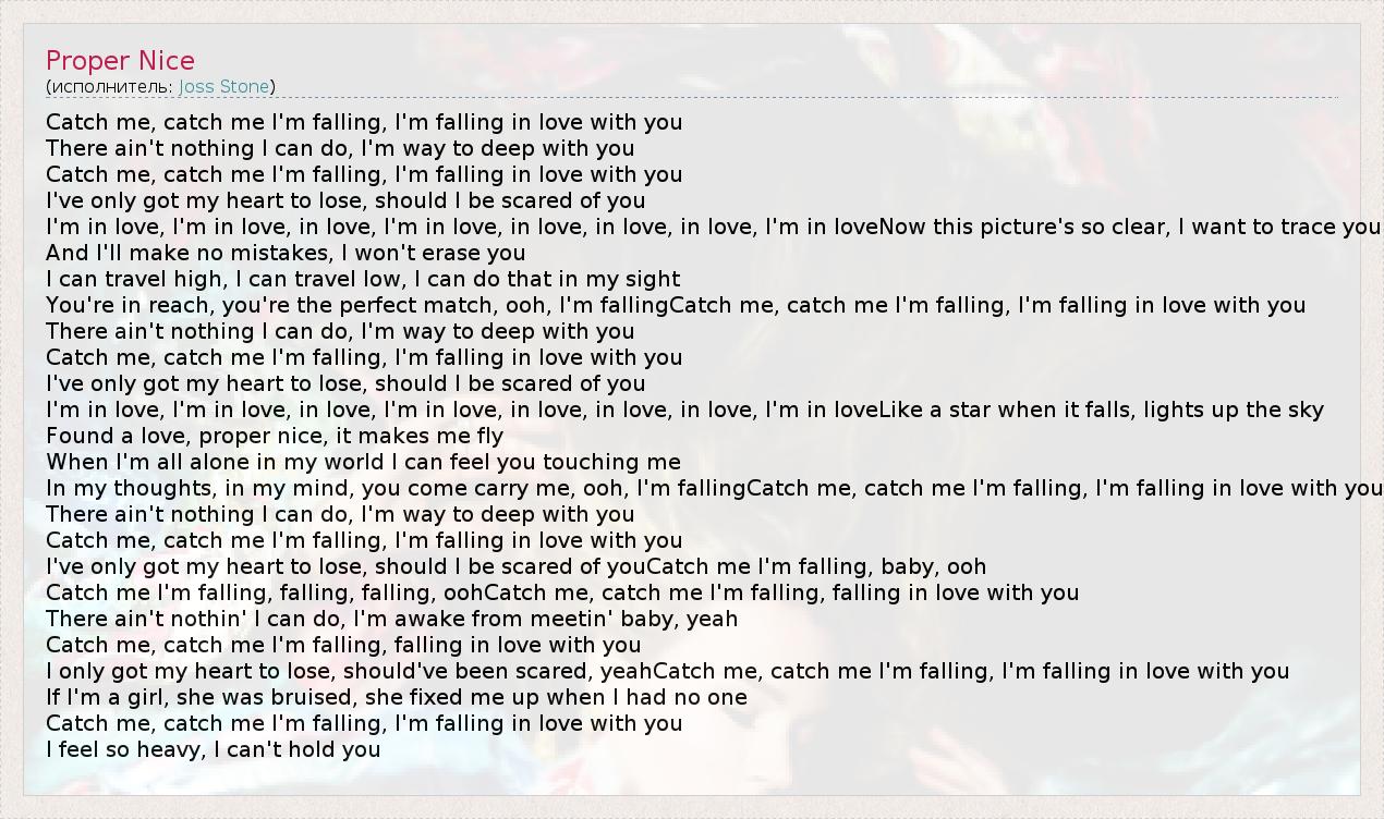 А как ты думаешь, о чем песня "Proper Nice" ?