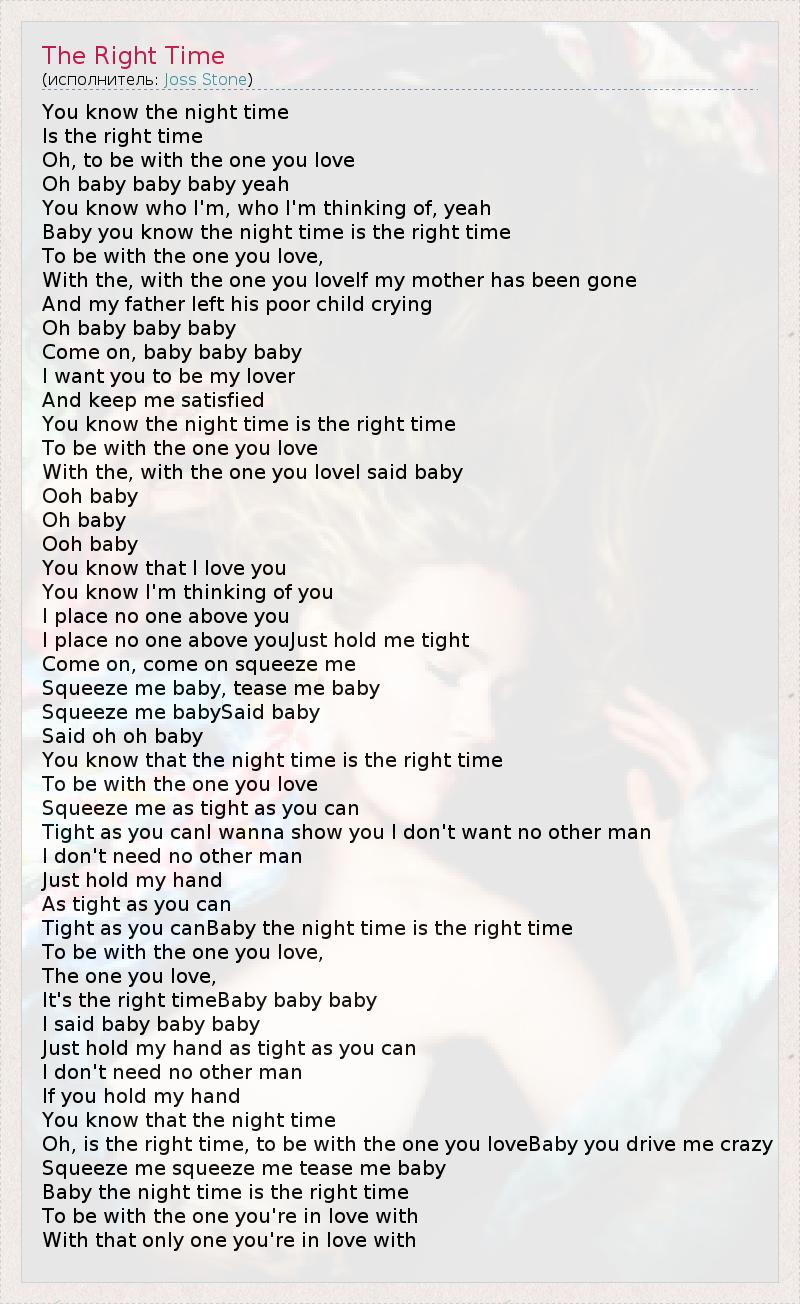 Oh, is the right time, to be with the one you loveBaby you drive me crazy