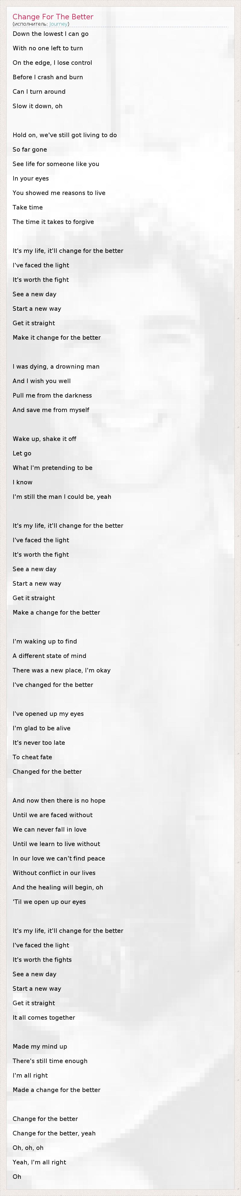А как ты думаешь, о чем песня "Change For The Better" ?