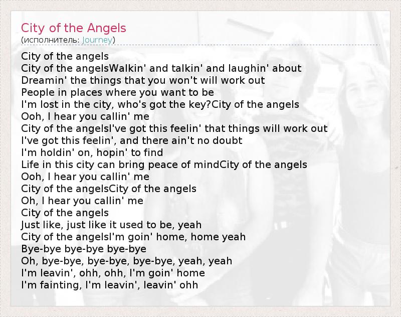 А как ты думаешь, о чем песня "City of the Angels" ?