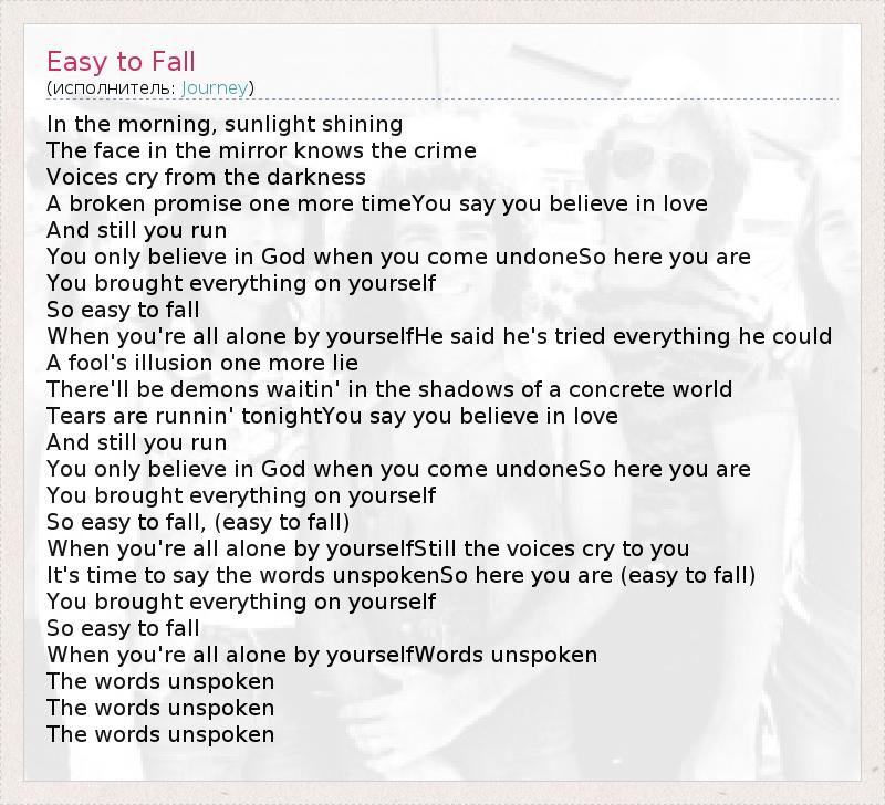 А как ты думаешь, о чем песня "Easy to Fall" ?