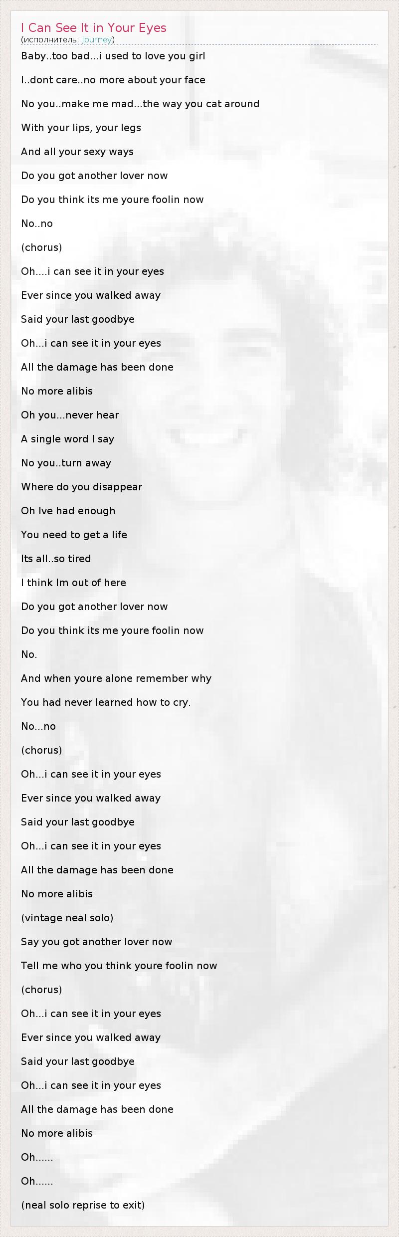 ГлавнаяИсполнителиJourneyI Can See It in Your Eyes