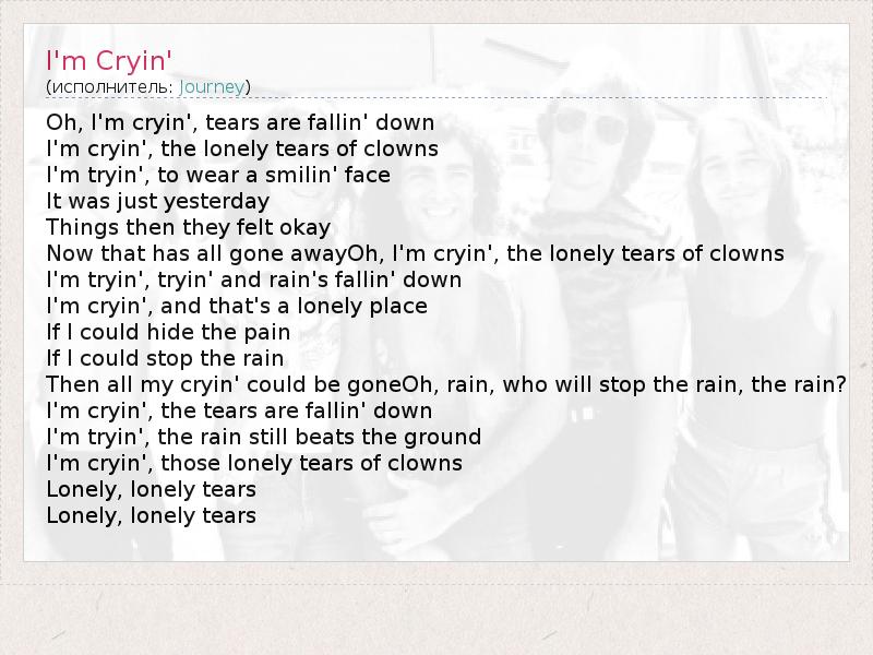 А как ты думаешь, о чем песня "I'm Cryin'" ?