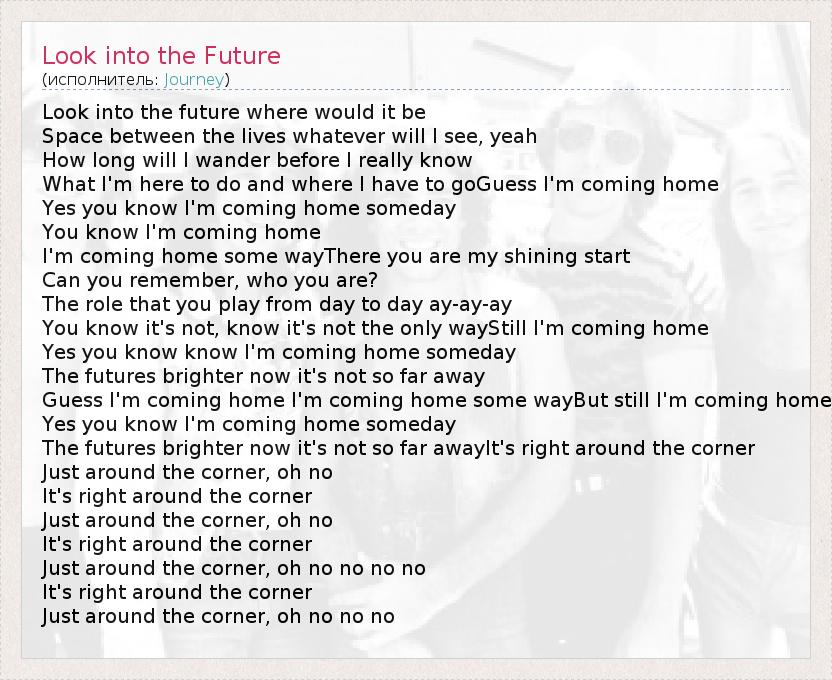 А как ты думаешь, о чем песня "Look into the Future" ?