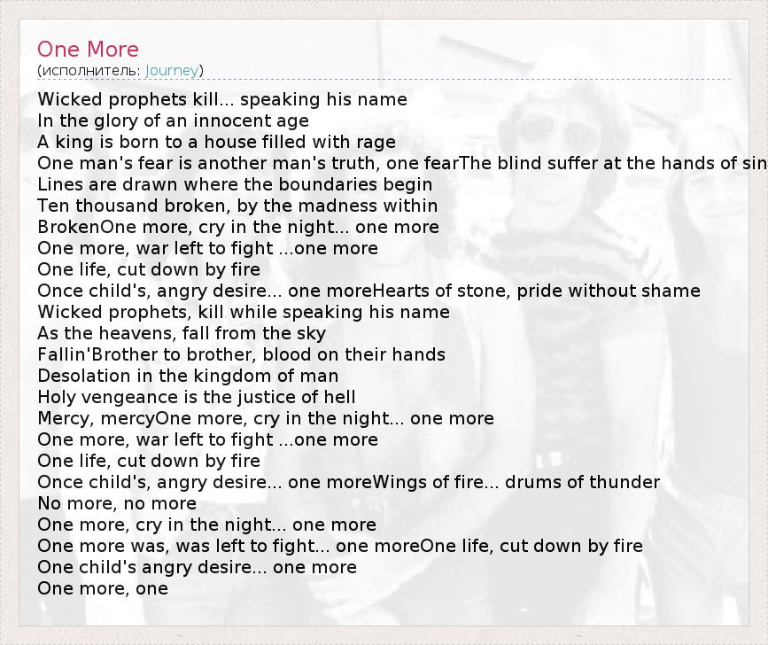 Once child's, angry desire... one moreHearts of stone, pride without shame
