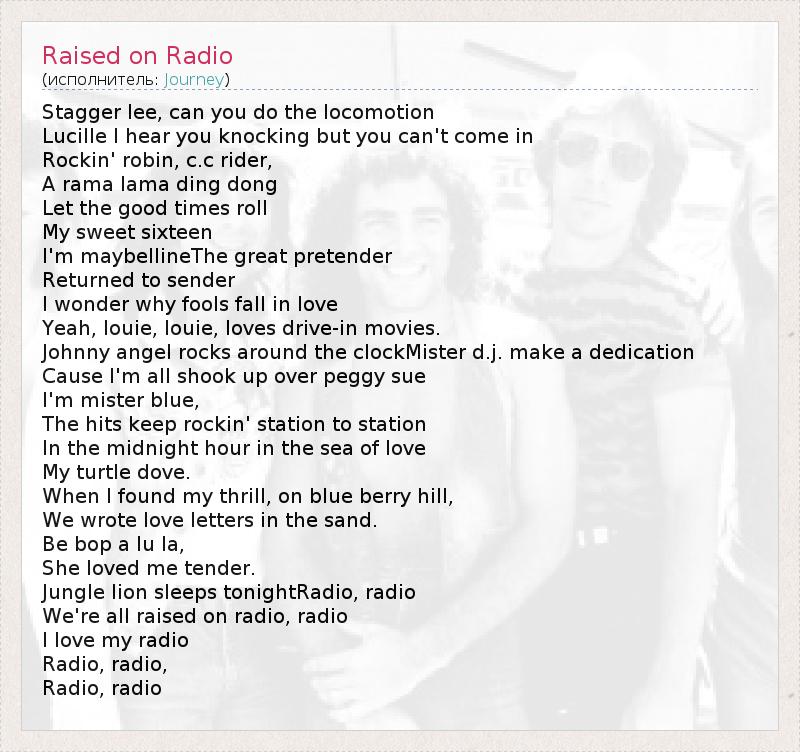 А как ты думаешь, о чем песня "Raised on Radio" ?