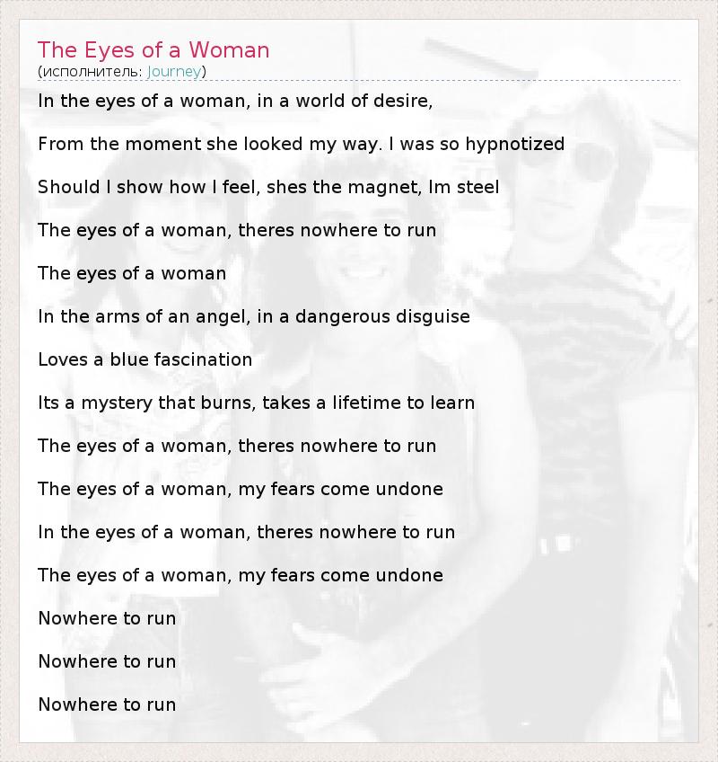 А как ты думаешь, о чем песня "The Eyes of a Woman" ?