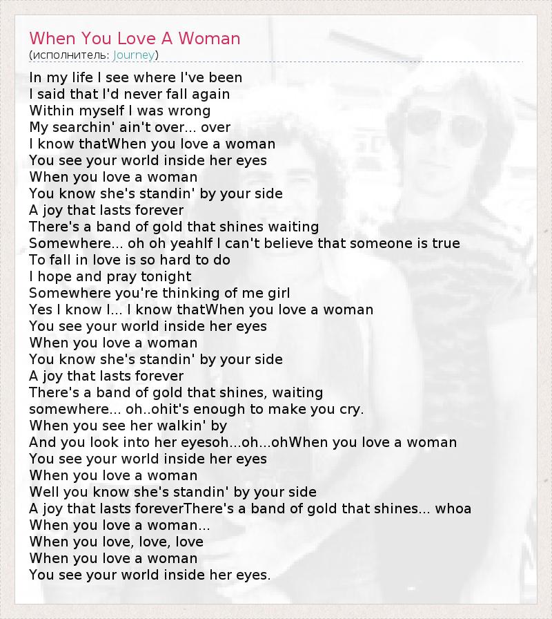 I know thatWhen you love a woman
