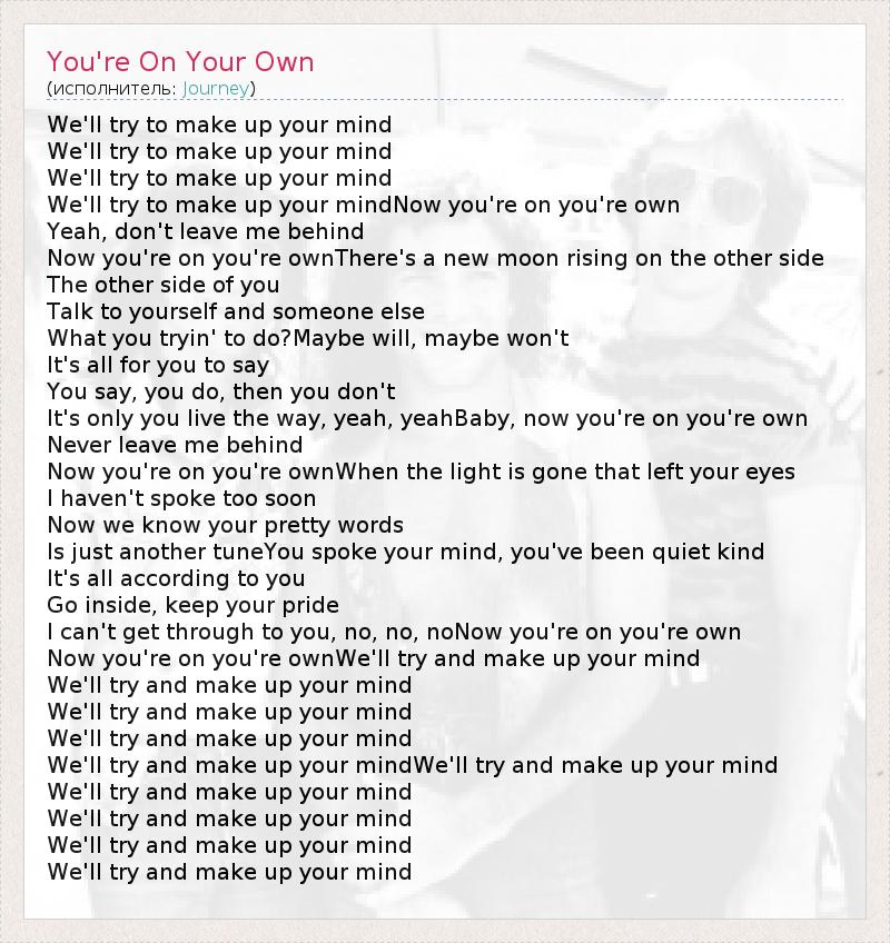 А как ты думаешь, о чем песня "You're On Your Own" ?