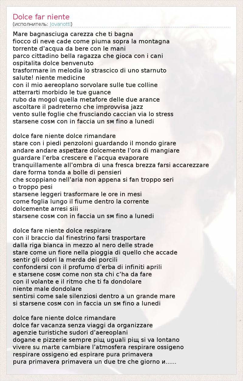 А как ты думаешь, о чем песня "Dolce far niente" ?