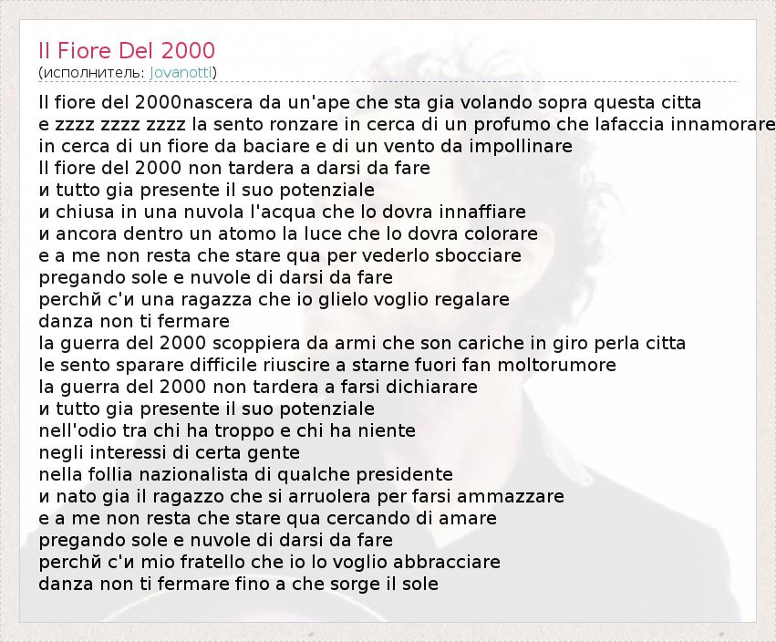 А как ты думаешь, о чем песня "Il Fiore Del 2000" ?