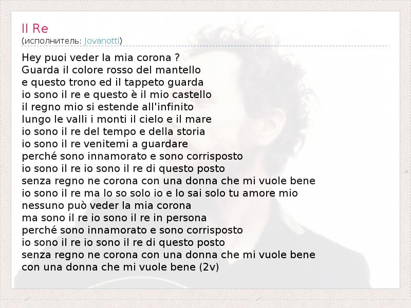 io sono il re ma lo so solo io e lo sai solo tu amore mio