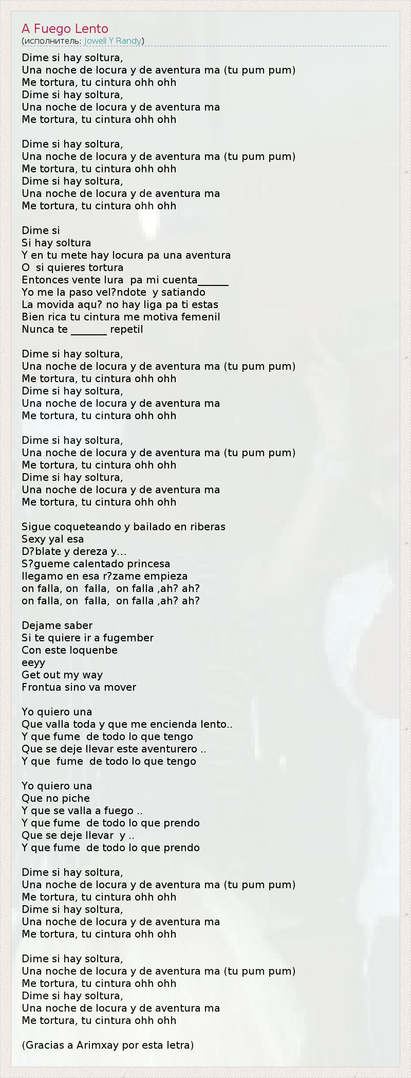 А как ты думаешь, о чем песня "A Fuego Lento" ?