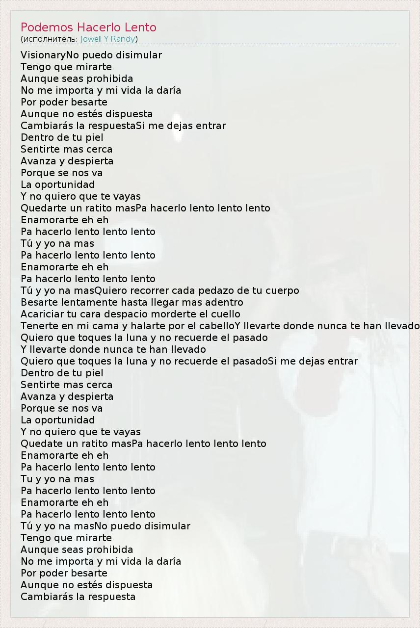 А как ты думаешь, о чем песня "Podemos Hacerlo Lento" ?