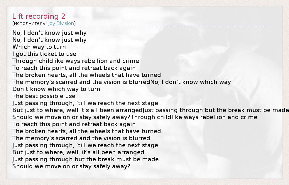 А как ты думаешь, о чем песня "Lift recording 2" ?