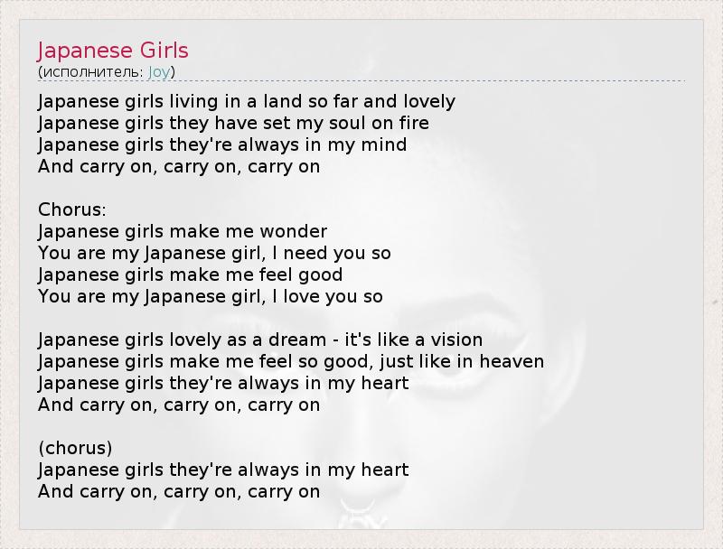 А как ты думаешь, о чем песня "Japanese Girls" ?