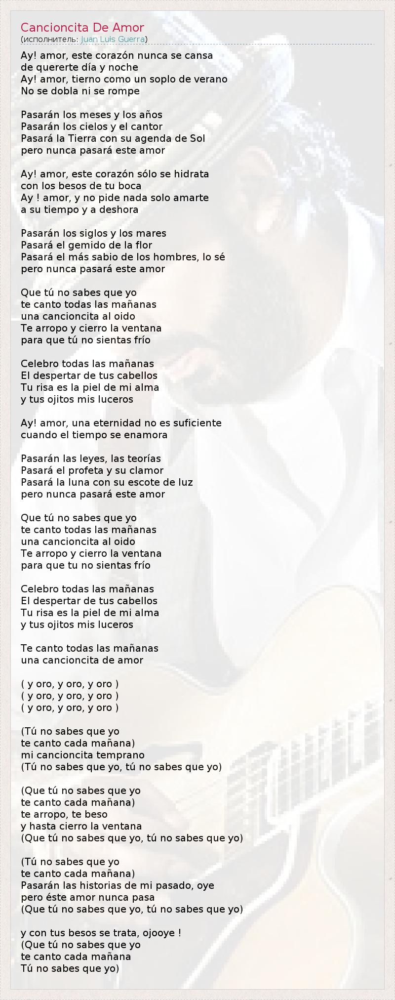 А как ты думаешь, о чем песня "Cancioncita De Amor" ?