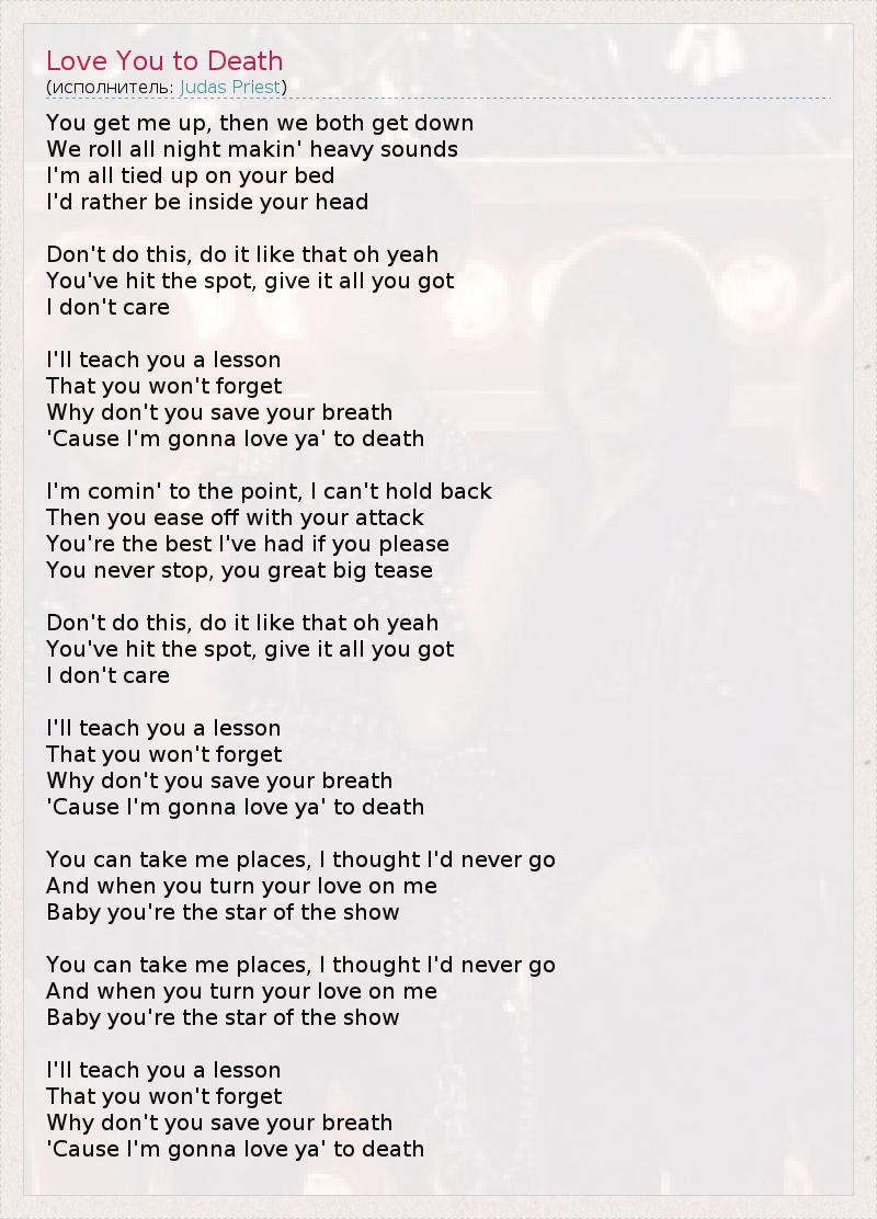 А как ты думаешь, о чем песня "Love You to Death" ?