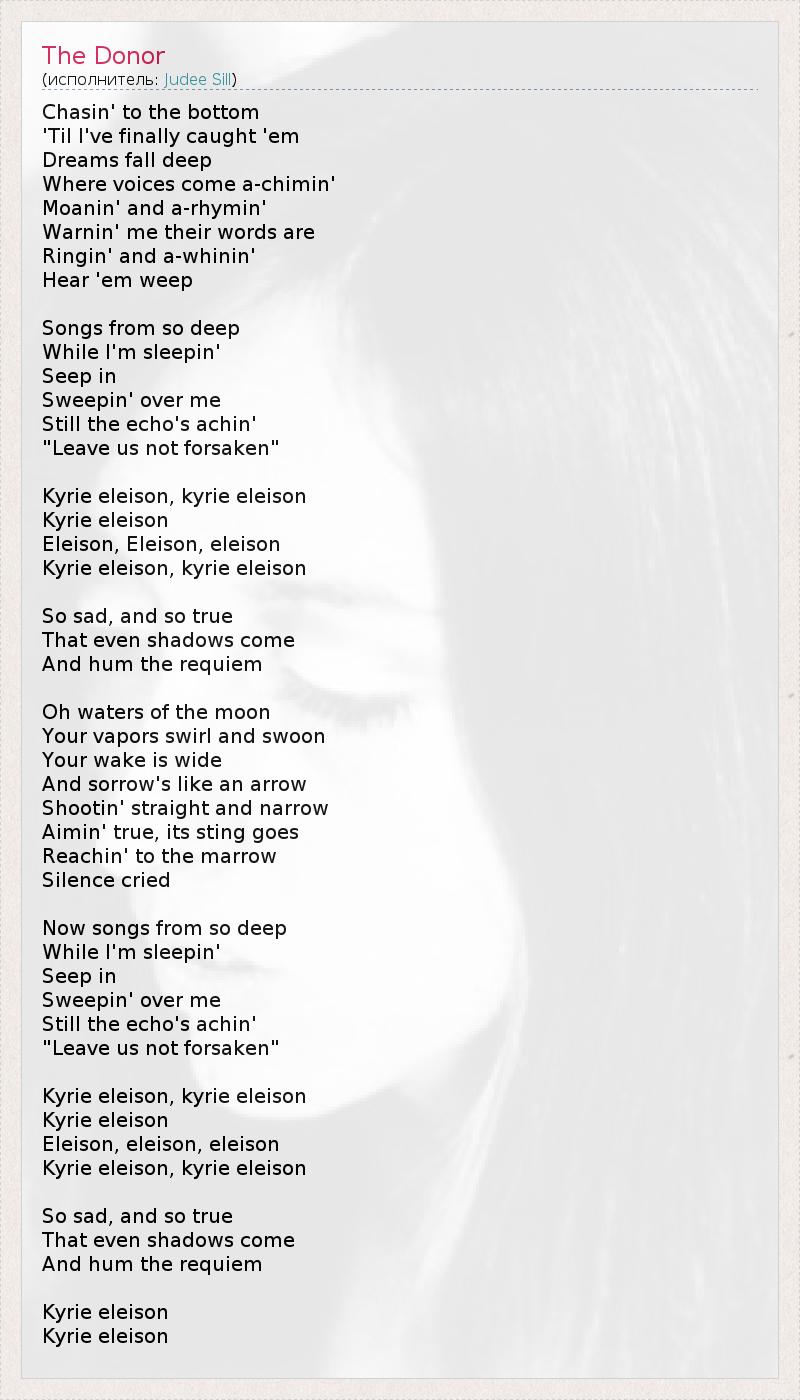 Это интересно:Judee Sill (born Judith Lynne Sill, October 7, 1944 – November 23, 1979) was an American singer and songwriter. The first artist signed to David Geffen's Asylum label, she released two albums, then worked briefly as a cartoonist before dying of drug abuse in 1979. Her eponymous debut album was released in late 1971 and was followed around eighteen months later by Heart Food. She also recorded demos for a third album in 1974, which were released with other rarities on the 2005 two-disc collection Dreams Come True.Sill was heavily influenced by Bach's metric forms and suites, while lyrically her work drew substantially on Christian themes of rapture and redemption.... продолжение