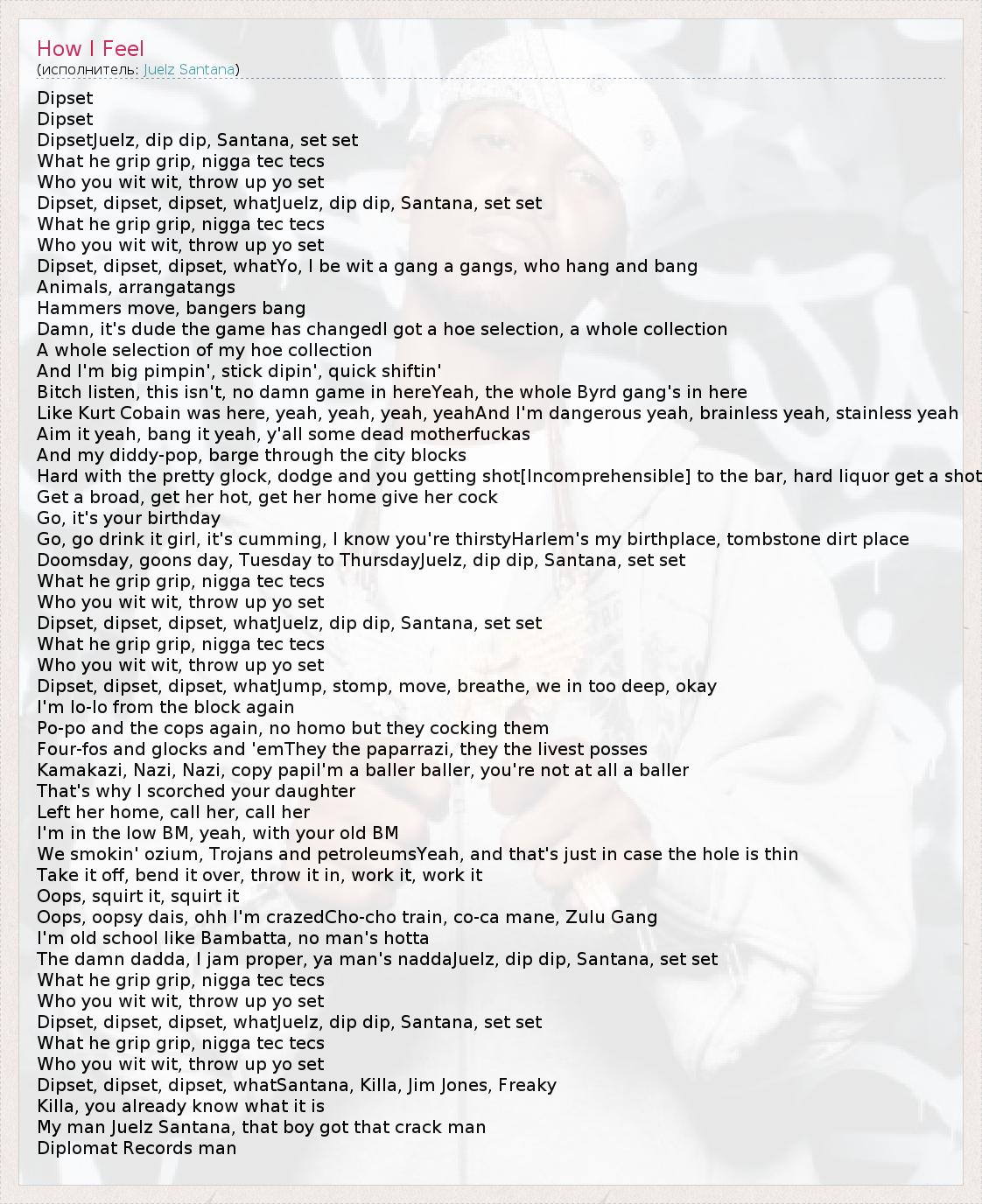 Dipset, dipset, dipset, whatJuelz, dip dip, Santana, set set