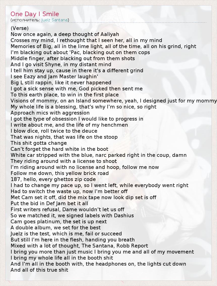 А как ты думаешь, о чем песня "One Day I Smile" ?