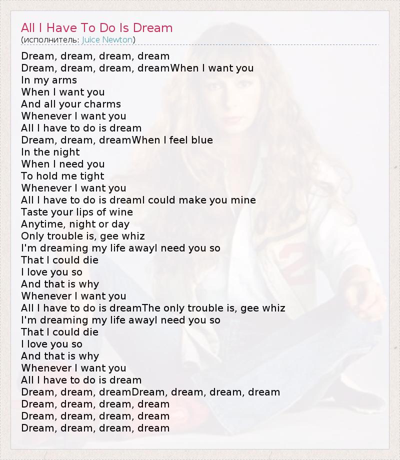 А как ты думаешь, о чем песня "All I Have To Do Is Dream" ?