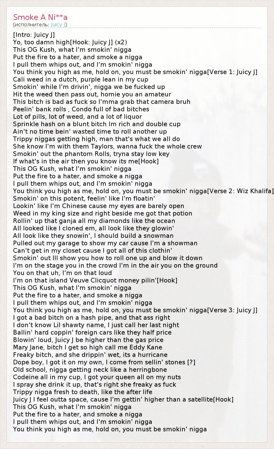 А как ты думаешь, о чем песня "Smoke A Ni**a" ?
