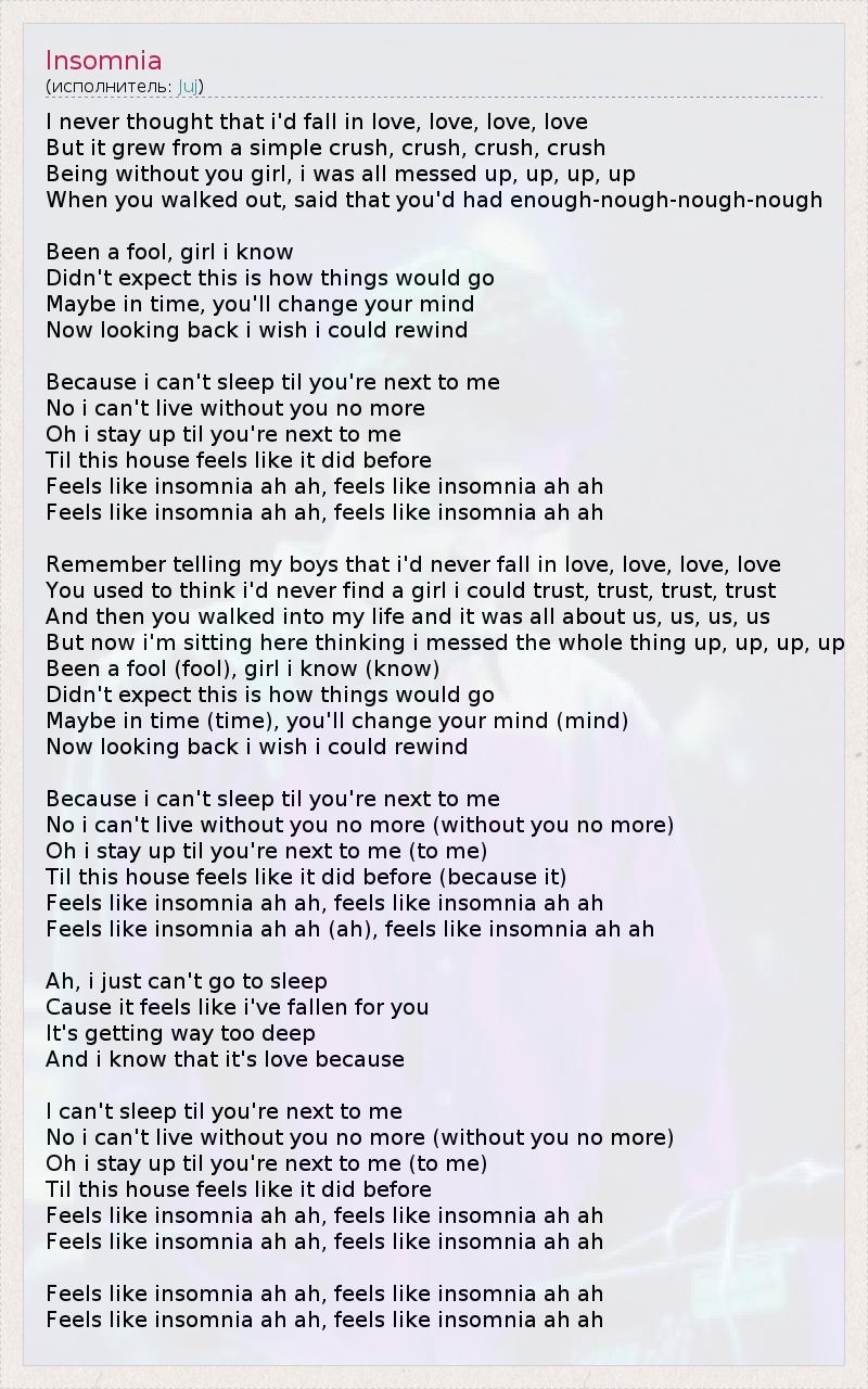 Feels like insomnia ah ah (ah), feels like insomnia ah ah