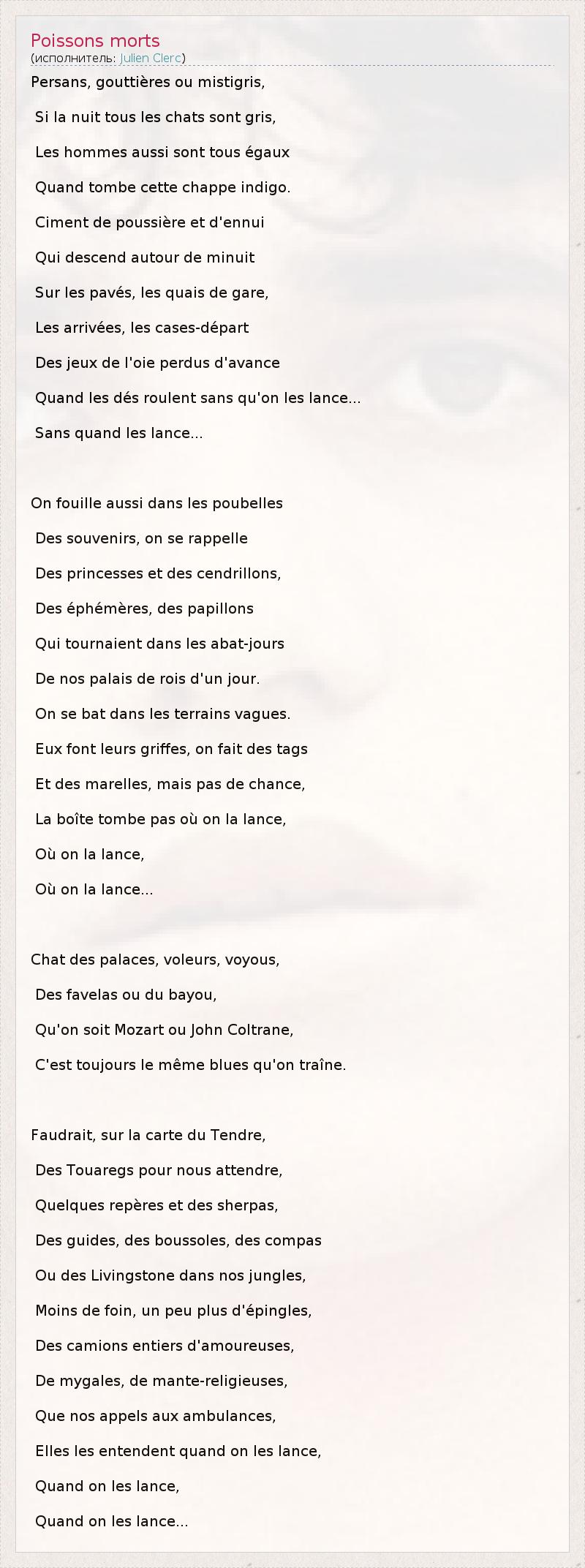 А как ты думаешь, о чем песня "Poissons morts" ?