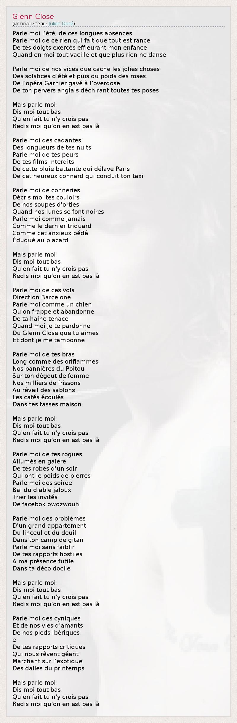 А как ты думаешь, о чем песня "Glenn Close" ?