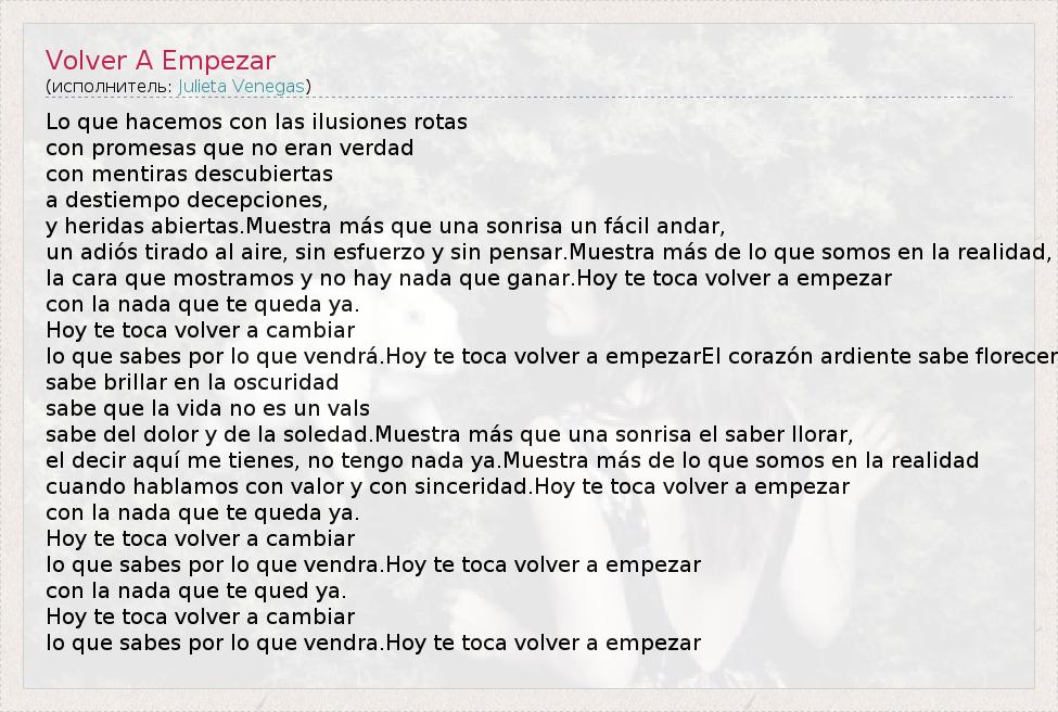 А как ты думаешь, о чем песня "Volver A Empezar" ?