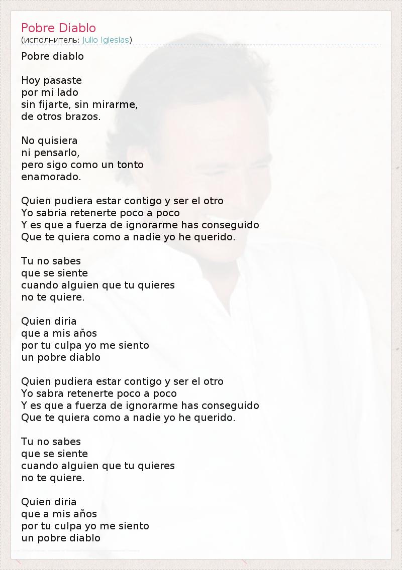 А как ты думаешь, о чем песня "Pobre Diablo" ?
